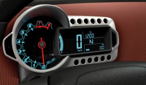 The stylish dual-cockpit design features two-tone upholstery and an ice-blue illuminated instrument cluster featuring digital and analogue dials.